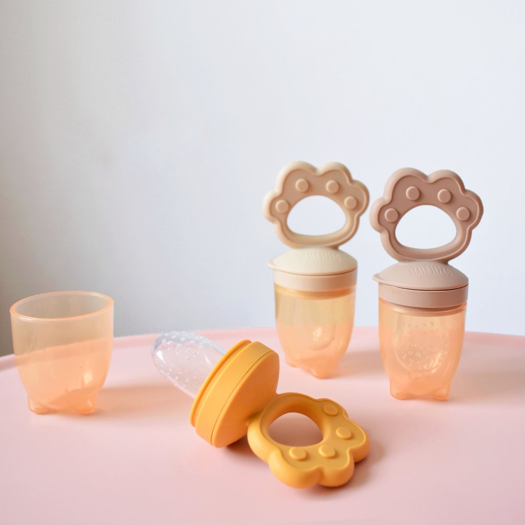 Stačí naplniť čerstvým ovocím alebo zeleninou a dieťatko si pochutná na nových chutiach bezpečne – bez rizika zadusenia. Vďaka malým otvorom sa k nemu dostanú len jemné kúsky.