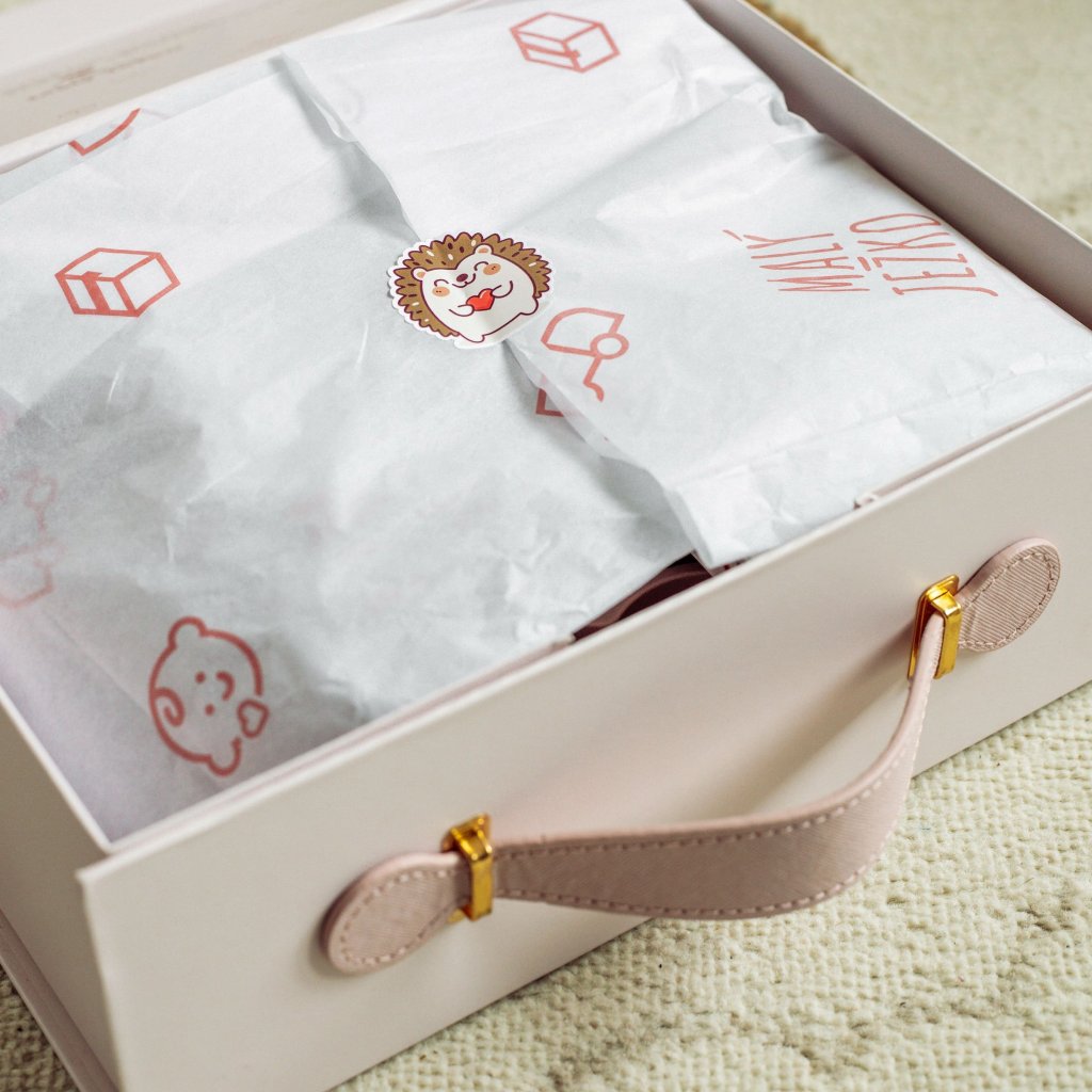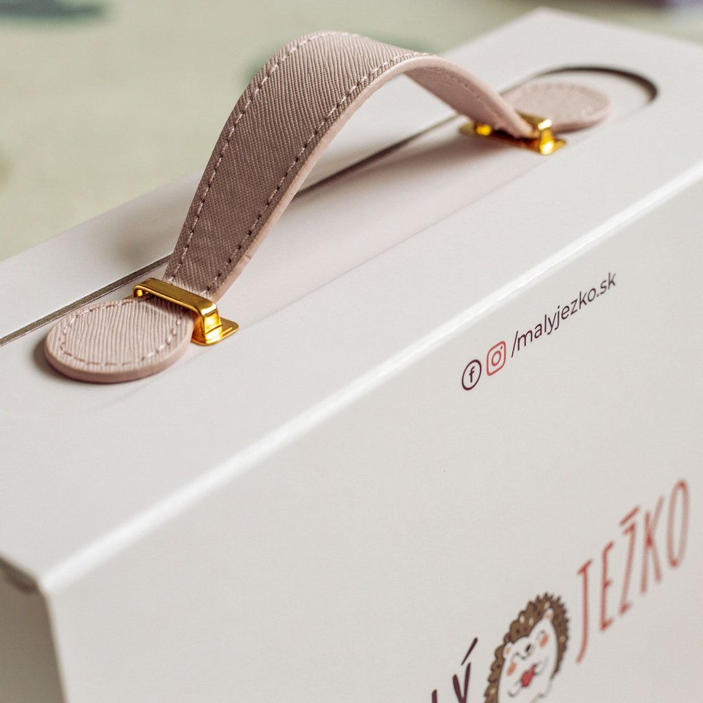 Elegantná a pevná darčeková krabica s koženkovou rúčkou a magnetickým zatváraním pôsobí prémiovo a elegantne už na prvý pohľad. Krásne ochráni detské produkty pri prenose, dodá darčeku vyššiu hodnotu a je ideálna na balíčky pre bábätká. Vďaka kvalitnému prevedeniu je opakovane použiteľná.