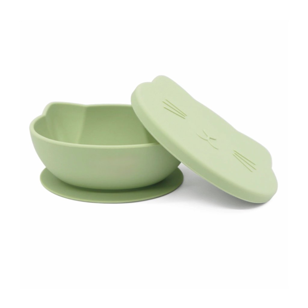 Silikónová detská miska s pokrievkou a prísavkou Mačička