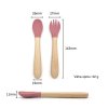 Tento príbor kombinuje bezpečnosť a komfort s menšou a užšou hlavou (27 mm), ktorá je ideálna pre malé detské ústa, na rozdiel od klasickej varianty s hlavou širokou 35 mm. Vyrobený z potravinárskeho silikónu a s drevenou rukoväťou, príbor je ľahký, odolný a príjemný na dotyk.