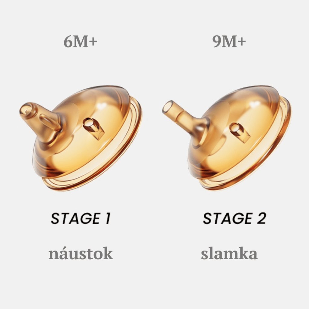 Pri hrnčeku 210 ml slúži ako pokračovací stupeň – namiesto pôvodného náustku ho môžete vymeniť za tento vrchnák so slamkou, ktorý pomáha dieťaťu prejsť na samostatné pitie.