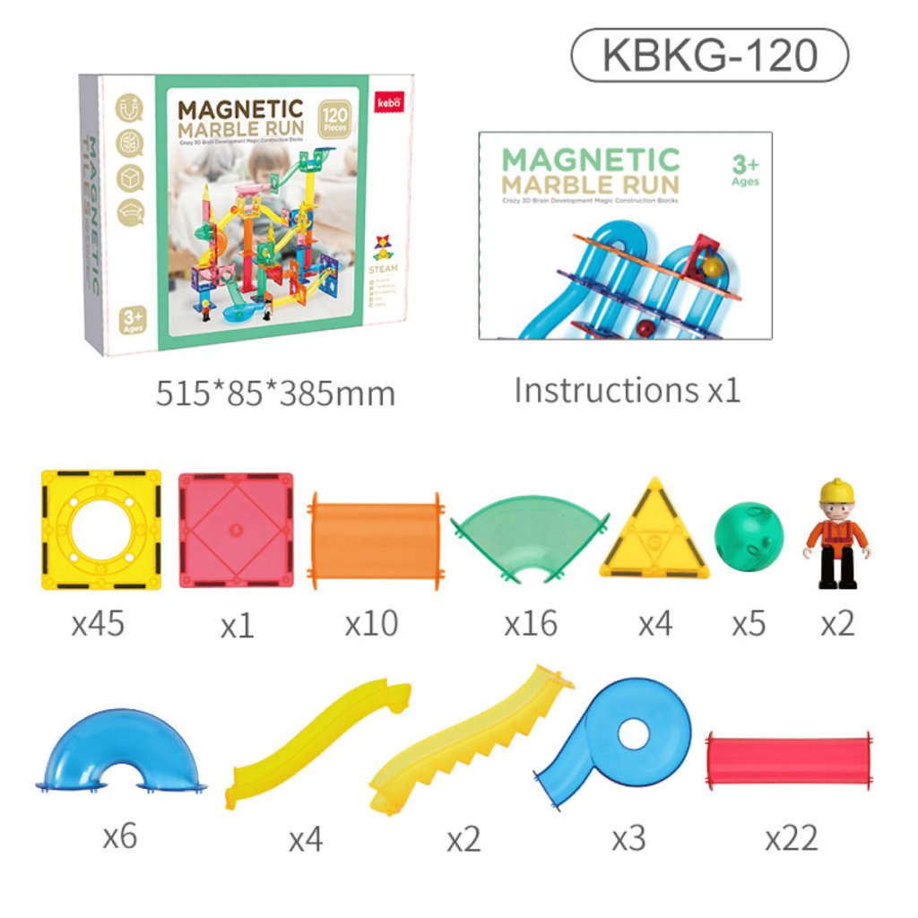 Magnetická guľôčková dráha Classic – 120 ks je náročná a kreatívna stavebnica pre staršie deti, ktoré milujú výzvy. S 5 guľôčkami, schodovitými úsekmi a tunelmi si deti precvičia trpezlivosť, logiku a jemnú motoriku. Rozvíjajú kreativitu a sústredenie pri každom novom postavení dráhy.