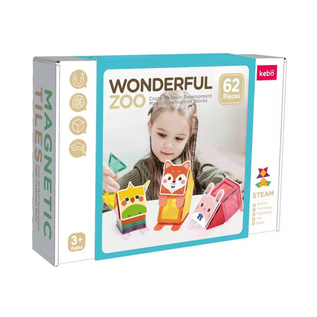 Magnetická stavebnica ZOO – 62 ks je hravá kombinácia stavania a sveta zvieratiek. Deti si vytvoria vlastnú ZOO plnú farieb, tvarov a originálnych zvieracích kombinácií. Ideálna hračka pre malých milovníkov zvierat, ktorá podporuje kreativitu, sústredenie a radosť z objavovania.