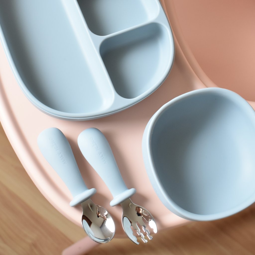 - Ergonomický dizajn: Elegantné silikónové rukoväte sú navrhnuté s hrubším vrchom, čo zlepšuje manipuláciu s jedlom a poskytuje pohodlné uchopenie. Tento praktický dizajn zabezpečuje, že príbor pevne a pohodlne leží v ruke, čo deťom pomáha ľahko ovládať príbor a užívať si jedlo s väčším komfortom.