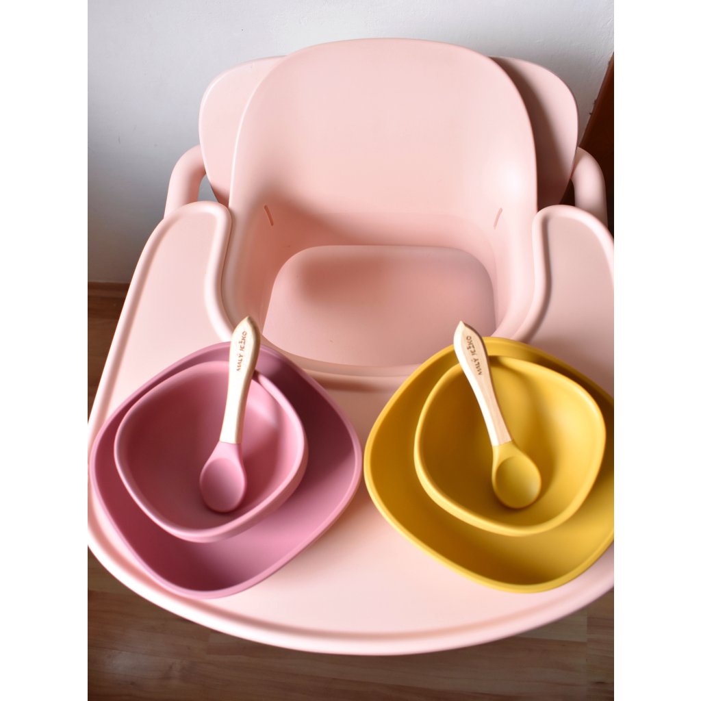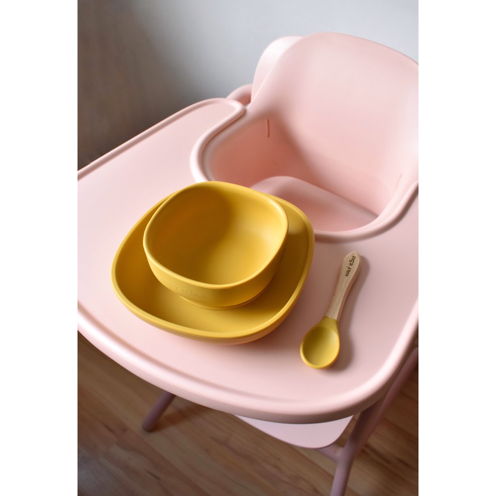 Silikónový 3-dielny jedálenský set pre deti Malý Ježko je ideálny pomocník pri prvých príkrmoch a učení sa samostatne papať. Obsahuje tanierik bez priehradok, misku s prísavkou a lyžičku s jemnou silikónovou hlavou. Všetky časti sú vyrobené z bezpečného potravinárskeho silikónu bez BPA, ktorý sa ľahko čistí a je vhodný do umývačky riadu aj mikrovlnky. Minimalistický dizajn spája praktickosť a bezpečie pri každodennom stolovaní.