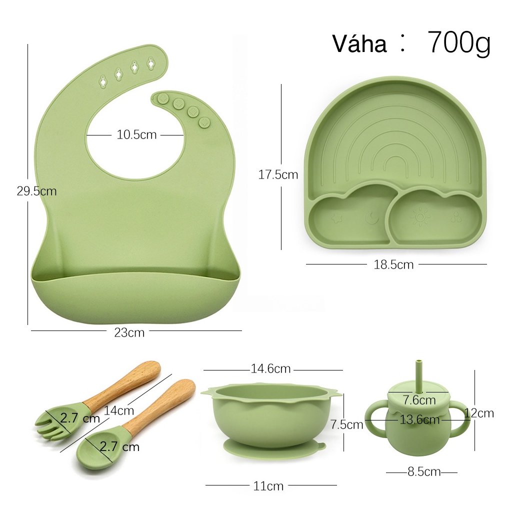 Pozrite si náš 6-dielny silikónový set „DÚHA“ – vytvorený, aby sa stal najlepším parťákom malého papkáča. Spája špičkovú kvalitu, praktické detaily a rozkošný dizajn, ktorý si zamilujete vy aj váš drobček.