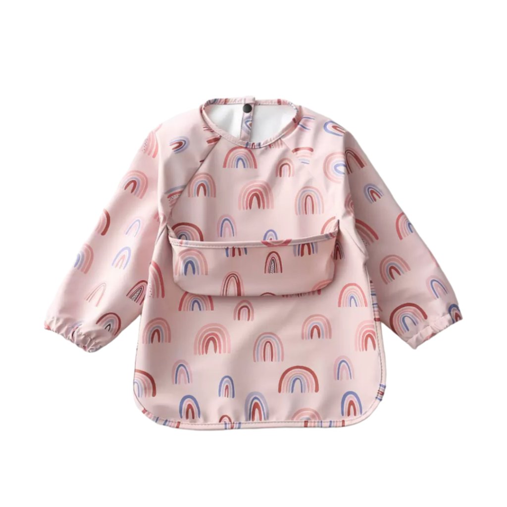 Nepremokavý detský podbradník s rukávmi – Dúha
