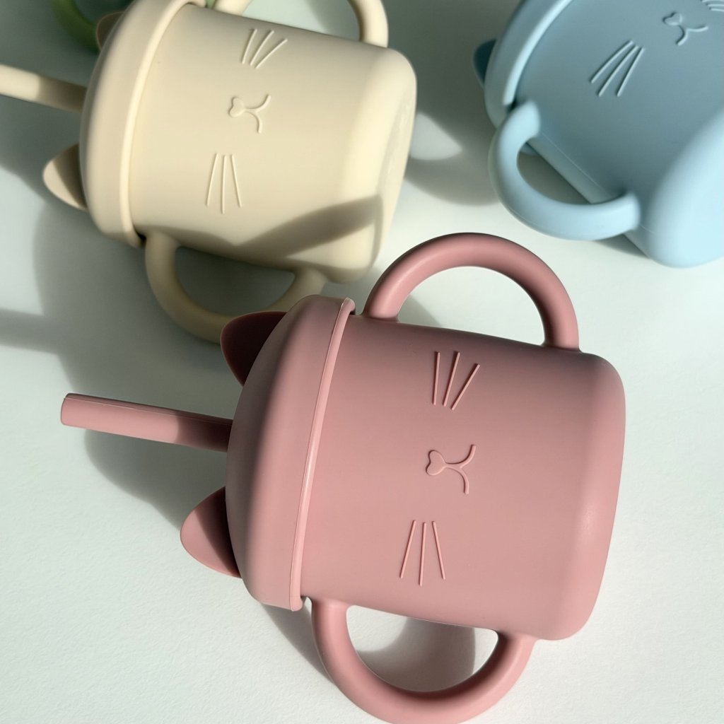 Silikónový pohárik Mačička 2v1 – so slamkou alebo otvorený. Roztomilý a praktický pohárik, ktorý uľahčuje prvé dúšky aj učenie sa samostatného pitia. Odnímateľná slamka umožňuje flexibilné používanie, materiál je mäkký, bezpečný a odolný voči pádom.