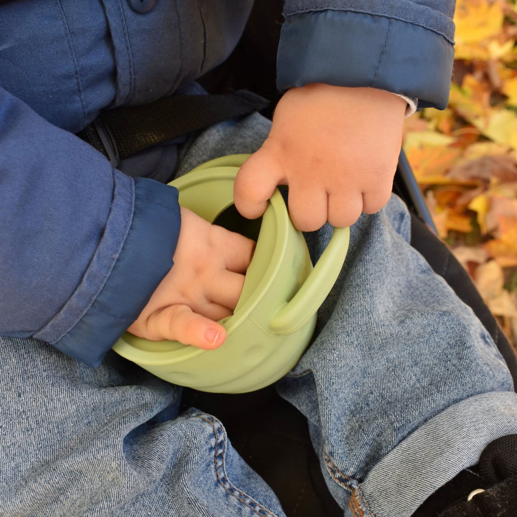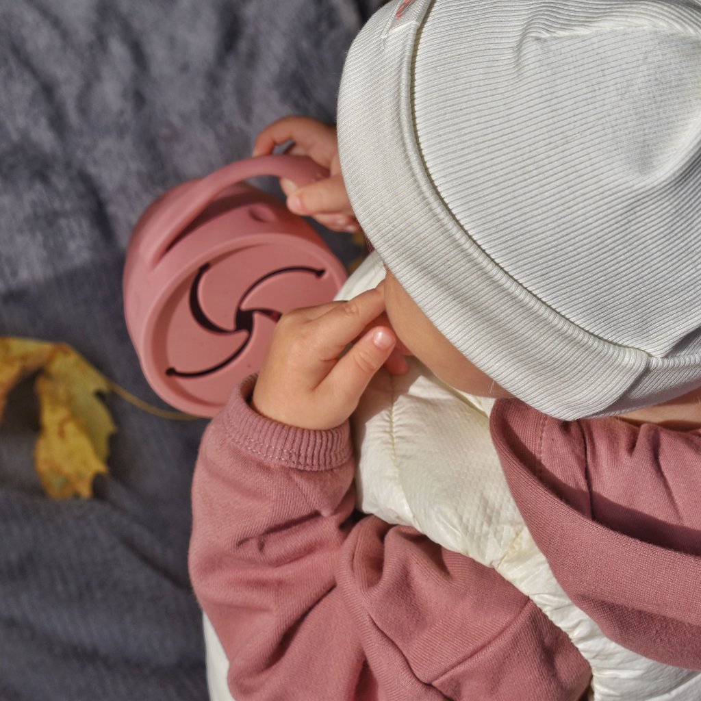 Snack pohárik z potravinárskeho silikónu – praktický pomocník pre malé ručičky.